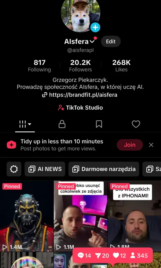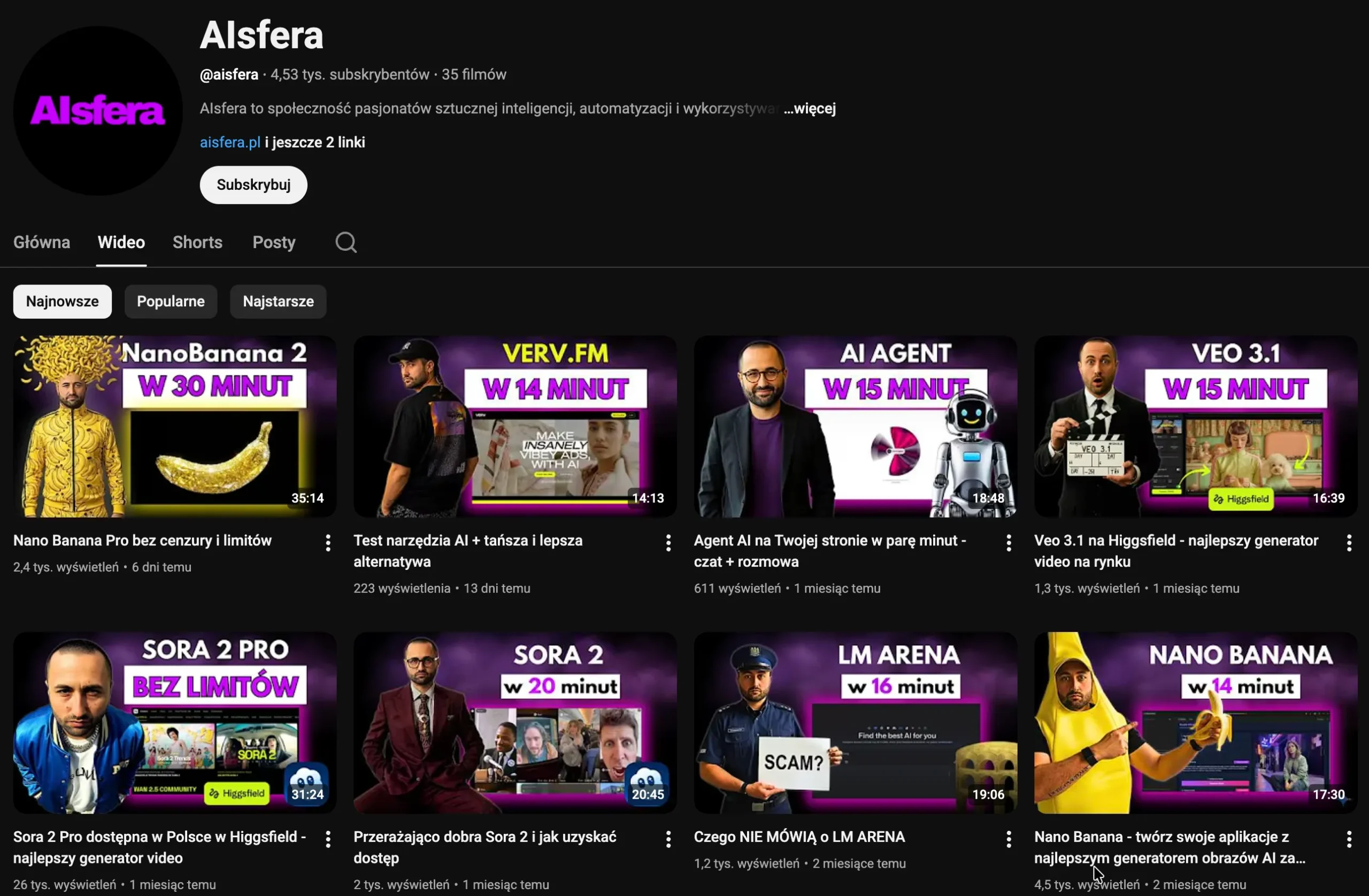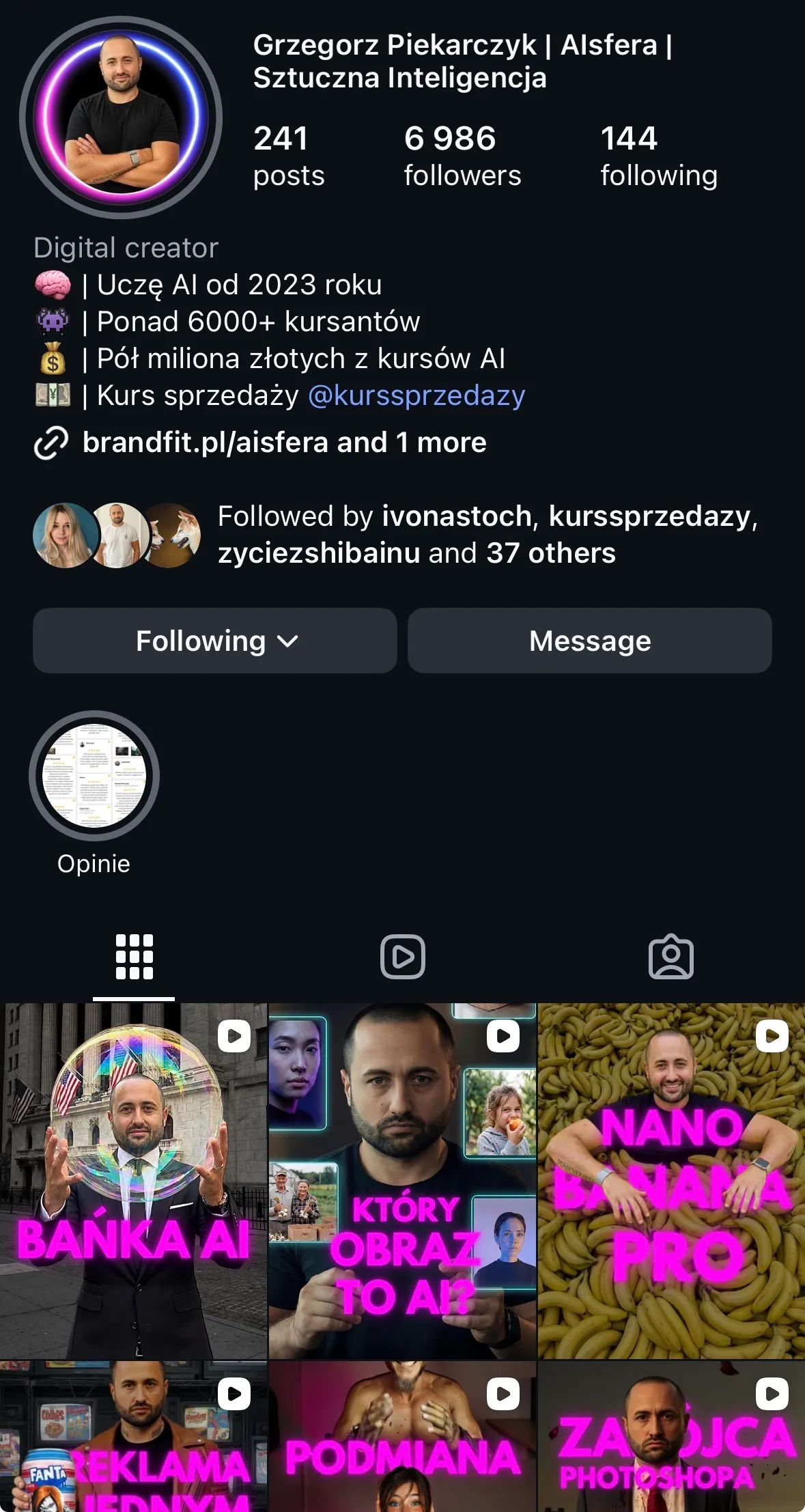 Na pierwszym miejscu jest AIsfera. Jak zostaje mi trochę czasu, to publikuję w social mediach o AI.