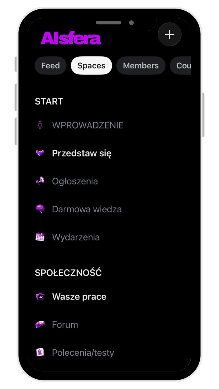 AIsfera jest podzielona na grupy przestrzeni oraz przestrzenie. Wszystko na potrzeby społeczności. Materiały w przestrzeniach pojawiają sie cały czas.